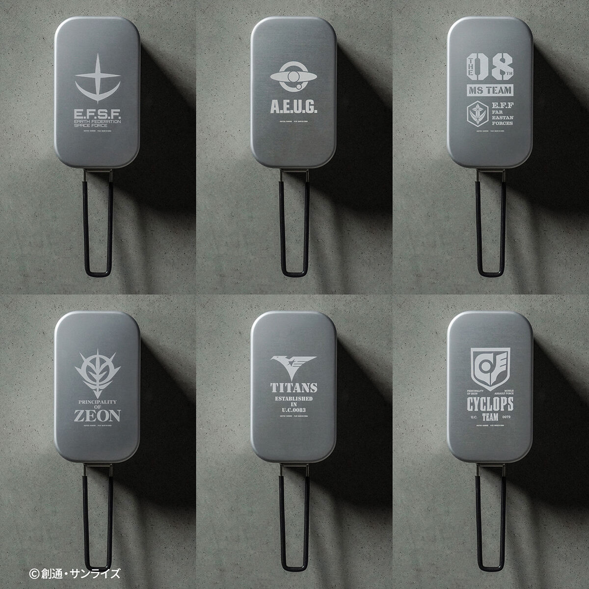 - 『ガンダム』シリーズに登場する「地球連邦軍」/「ジオン公国軍」/「エゥーゴ」/「ティターンズ」/「第08MS小隊」/「サイクロプス隊」のマークを刻印したメスティン(飯ごう)です。