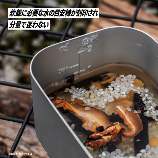 - ガンダムシリーズに登場する軍・組織・部隊のマークが刻まれたメスティンで野外調理をすれば、まるで一兵士として野営をしているような雰囲気を味わえます。