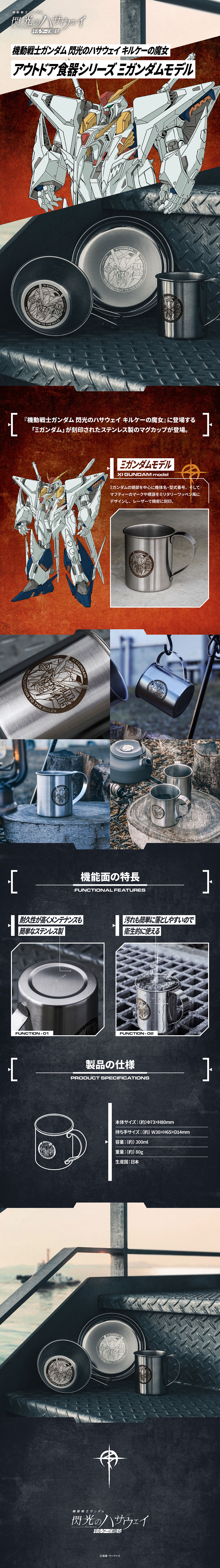 - Ξガンダムが刻まれたキャンプギアを野外に持ち出せば、まるでマフティーのメンバーになったような雰囲気を味わえます。