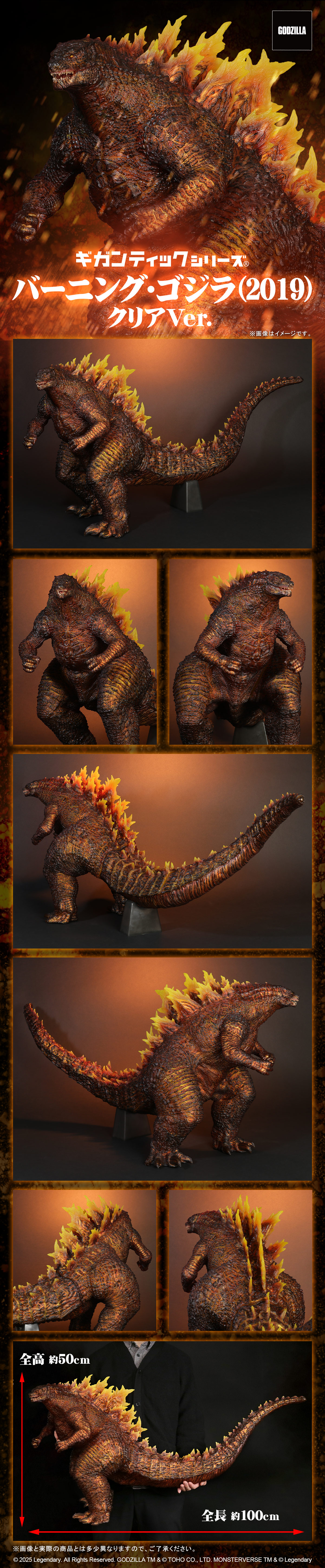 高熱エネルギーを全身に纏いキングギドラに立ち向かう姿を、全長約100cmの超ボリュームで立体化!