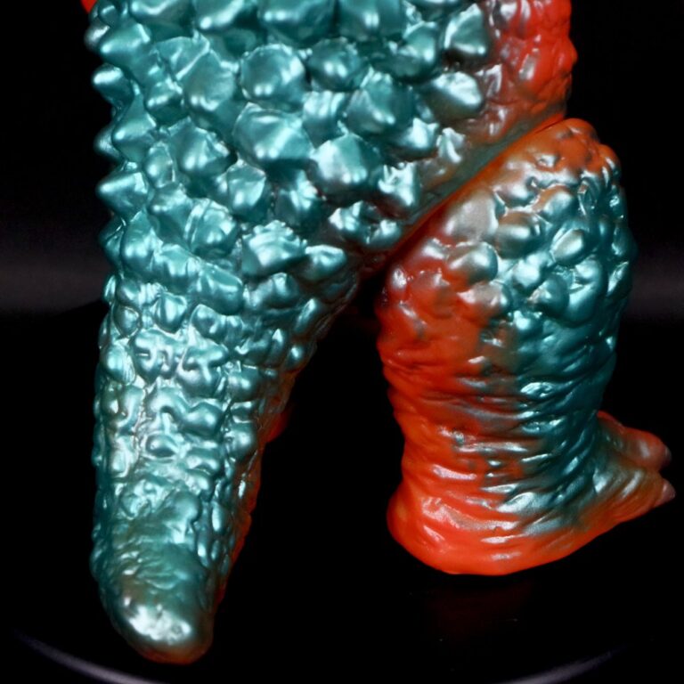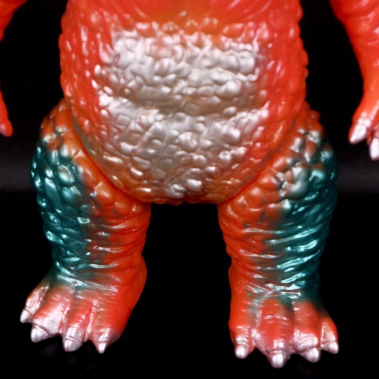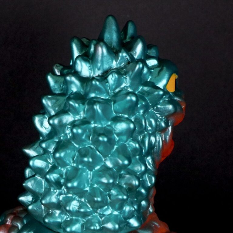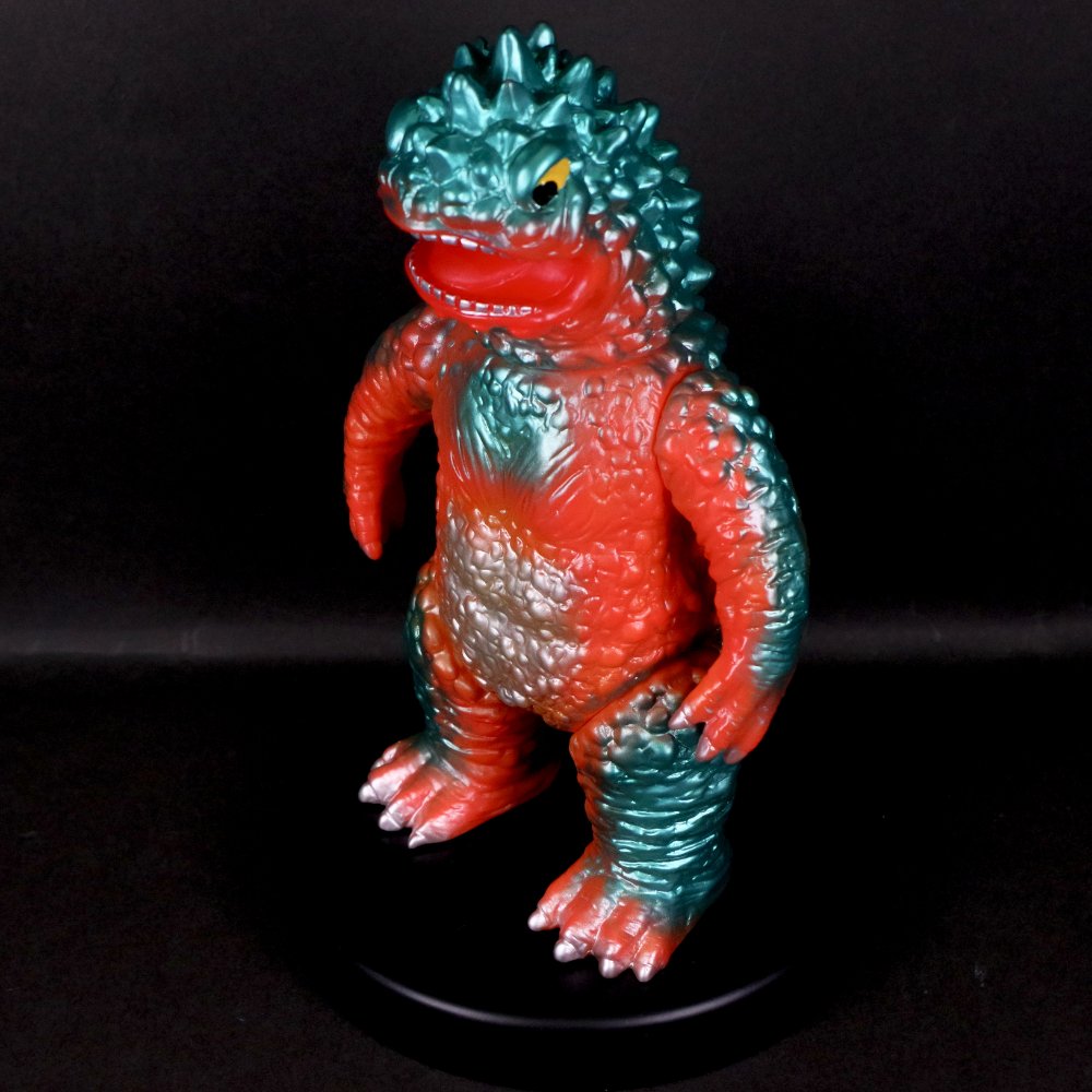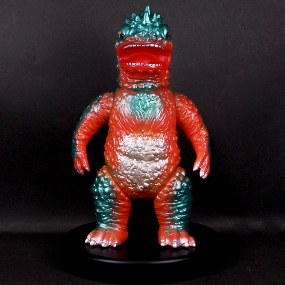 今回は、濃い目のオレンジ成型を鮮やかなメタリックグリーンで包んだ怪獣ソフビ定番カラーでのお届け。