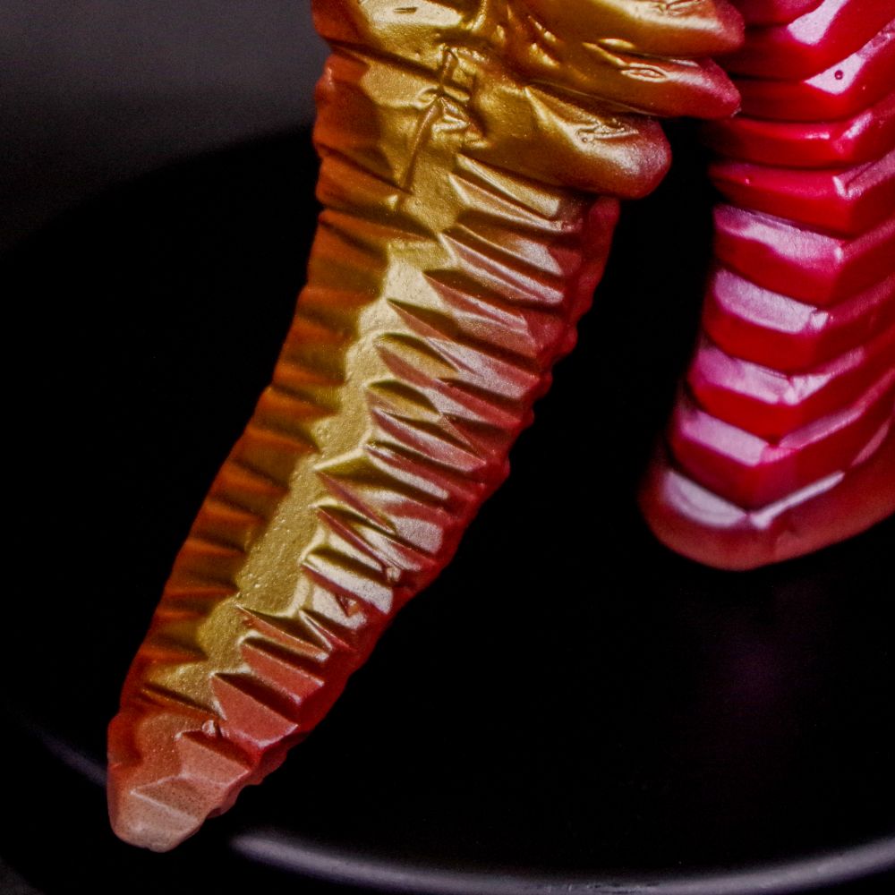 目から凄まじい光熱を放つQ星の怪獣も墓場の画廊初参戦!重厚なブラウンにアクセントのマゼンタが効いた美しい仕上がりに。
