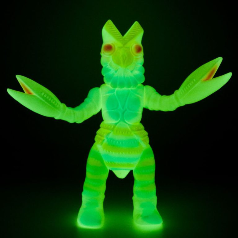 『ブルマァク』の『バルタン星人』が待望の一般販売開始!! ポップな色合いの蓄光版と、ブルー彩色にブラックのシャドウが映えるブラウンの2種が登場だ。