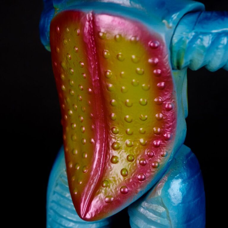 今回は、ソフビファンにはお馴染みとなる淡いブルーのベースに三原色を散りばめた彩色となっている。