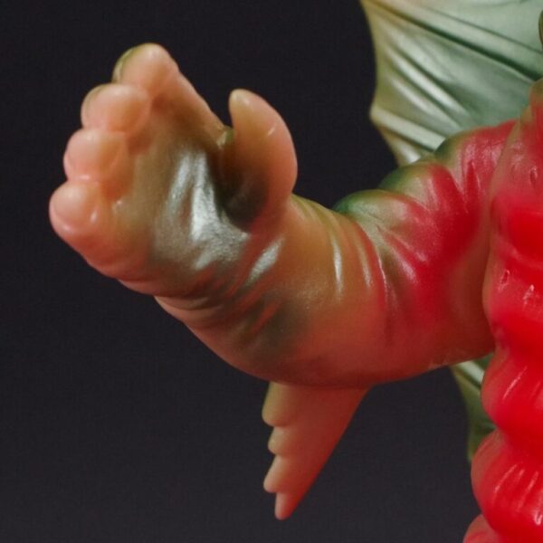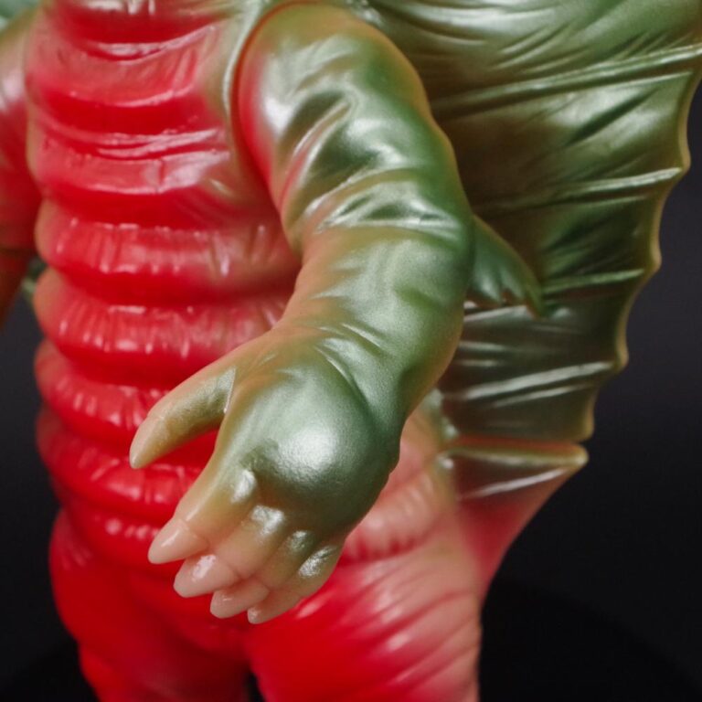 肌色成型を淡いメタリックグリーンとレッドで包んだインパクト抜群の色使いに加え、当時のサンプルに準拠し「ムルチ」の腕と入れ替えた仕様となっているのに注目してほしい。