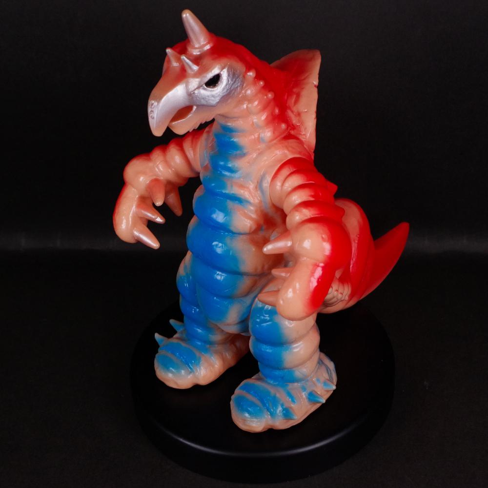 肌色成型を活かしつつレッドとブルーを配した鮮烈なカラーリングが、レトロソフビ好きの心に響く仕上がりだ。