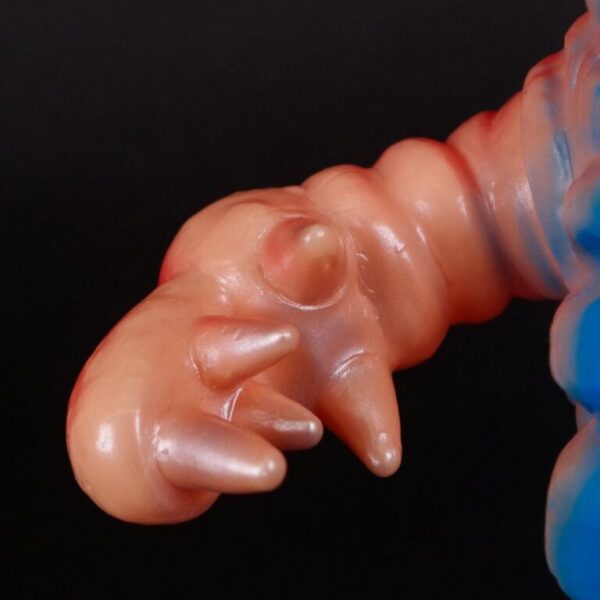 『イモムシ』モチーフの軟質なボディーと、エッジの効いた頭部や背面との質感の違いを見事に表現した造形は必見だ。