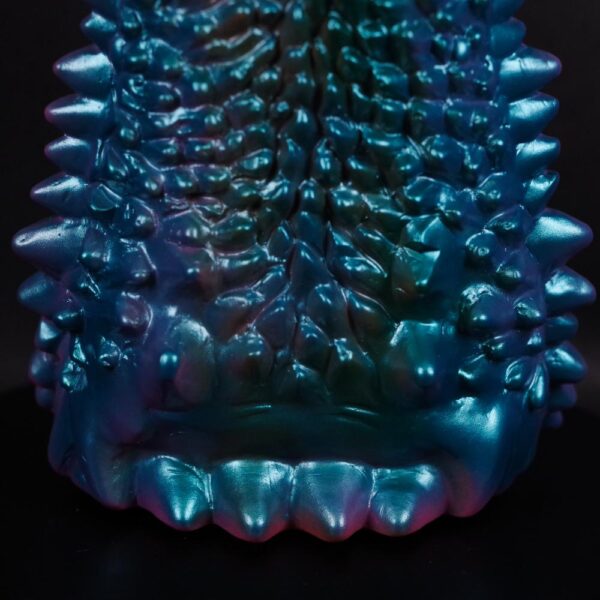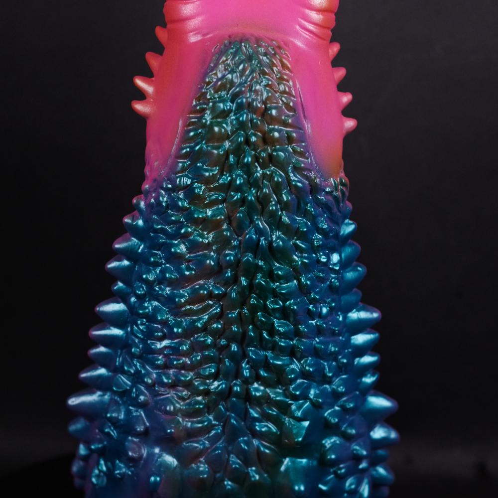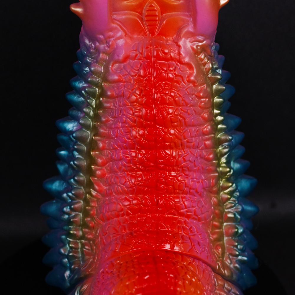 ひび割れた表皮やトゲだらけの背面を丹念に彫り込みつつ、独特な表情や名の由来となる2本の尻尾というポイントも的確に押さえた造形は絶品だ。