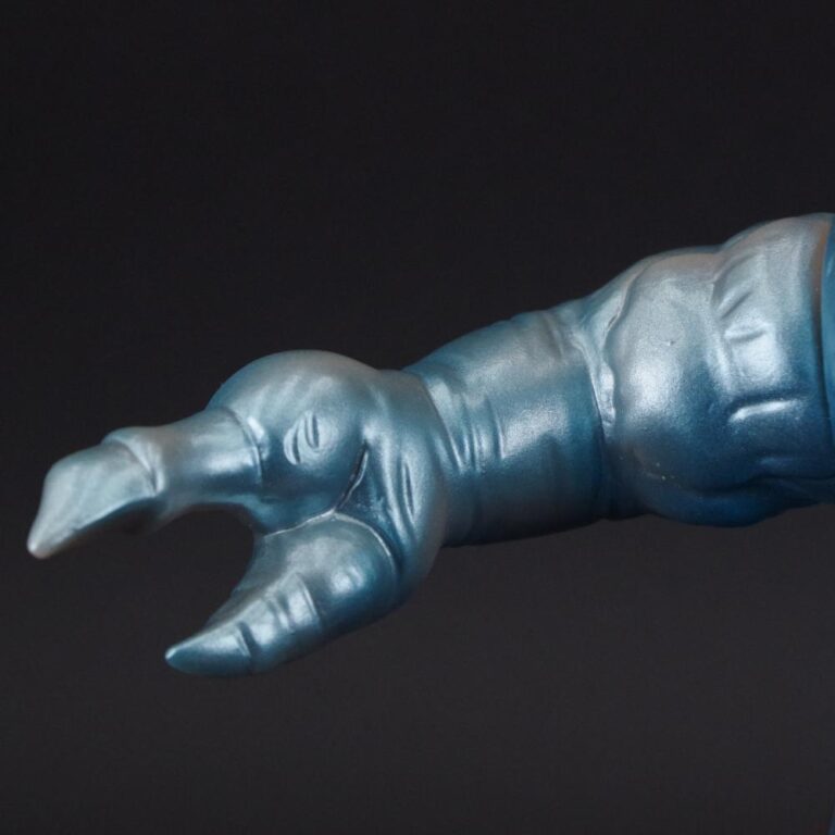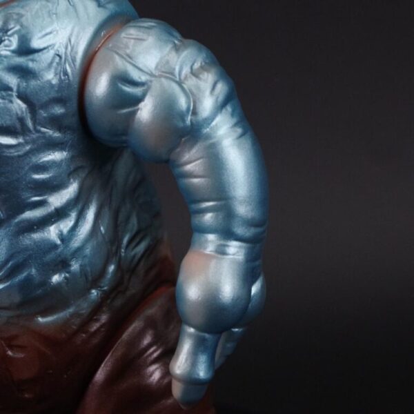 肌色成型を薄いメタリックブルーとブラウンで包んだムルチらしい色使いに加え、当時のサンプルに倣い「キングマイマイ」と腕を入れ違えたこだわりを楽しんでほしい。