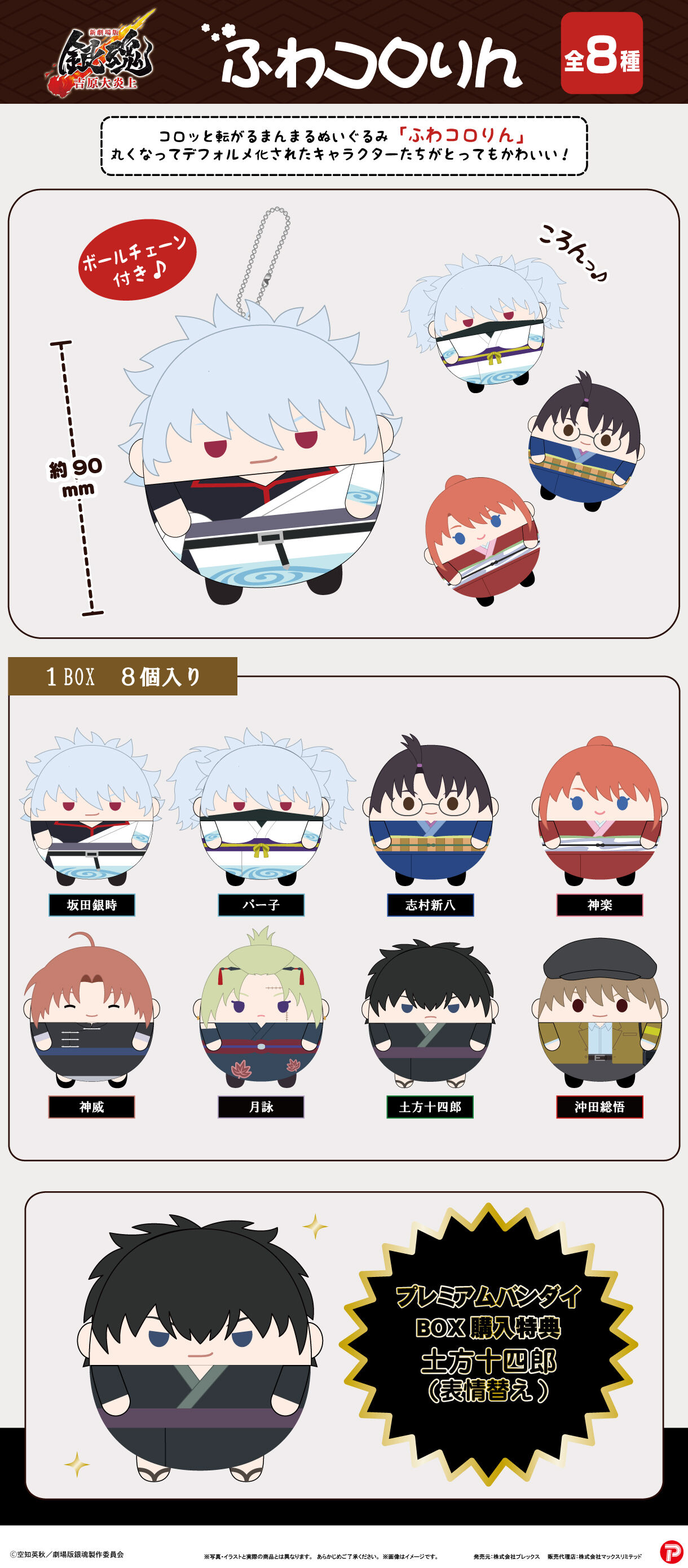 丸くなってデフォルメされたキャラクターたちがとってもかわいい【新劇場版 銀魂 -吉原大炎上- ふわコロりん】が新登場!</p>