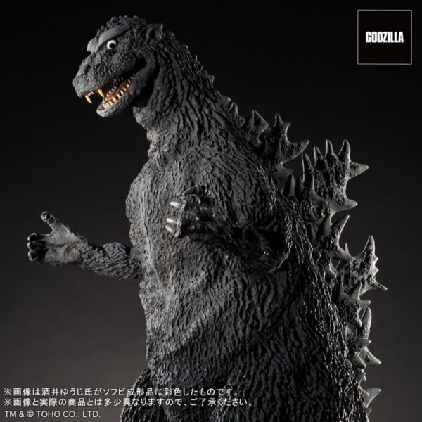 福島県須賀川市の「円谷英二ミュージアム」で怪獣造形監修を努めた酒井氏が、ミュージアムの顔となる初代ゴジラ立像(1号スーツ)を再現する際の原型となったのがこの『怪獣王ゴジラ』(酒井ゆうじ造型工房『30cm怪獣王ゴジラ』2014年)です。映画スタッフへの取材やあらゆる資料から酒井氏が慎重に検証し造型・彩色された円谷英二ミュージアム初代ゴジラ立像は、現存しない初代ゴジラの復刻とも言える再現性で完成し、その後同じ型から生み出された2つの立像、アトラクション用として活躍するスーツ(2号スーツ)が酒井氏造型監修により(株)東宝映像美術が造形し所有しています。 この『ゴジラ(1954)怪獣王ゴジラ ゴジラ・ストア限定復刻スーツ彩色版』は、これら初代ゴジラ立像・スーツをイメージしたカラーリングで酒井氏自らが監修しています。