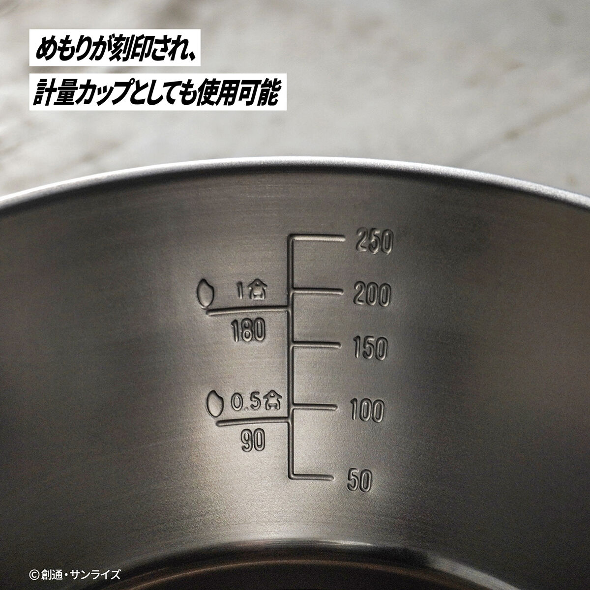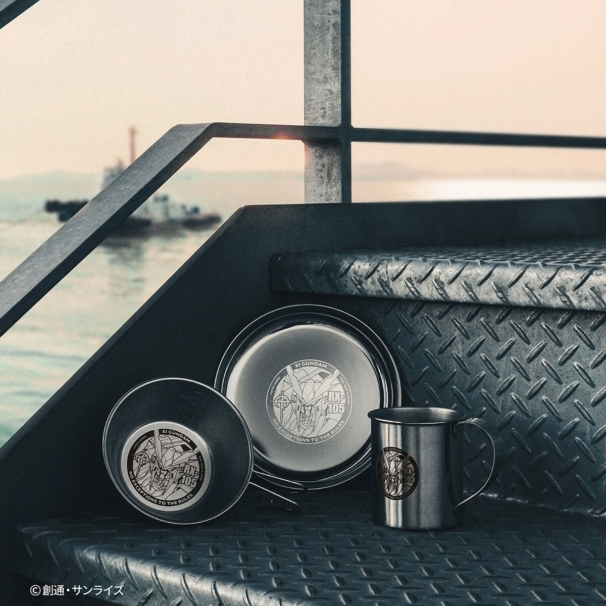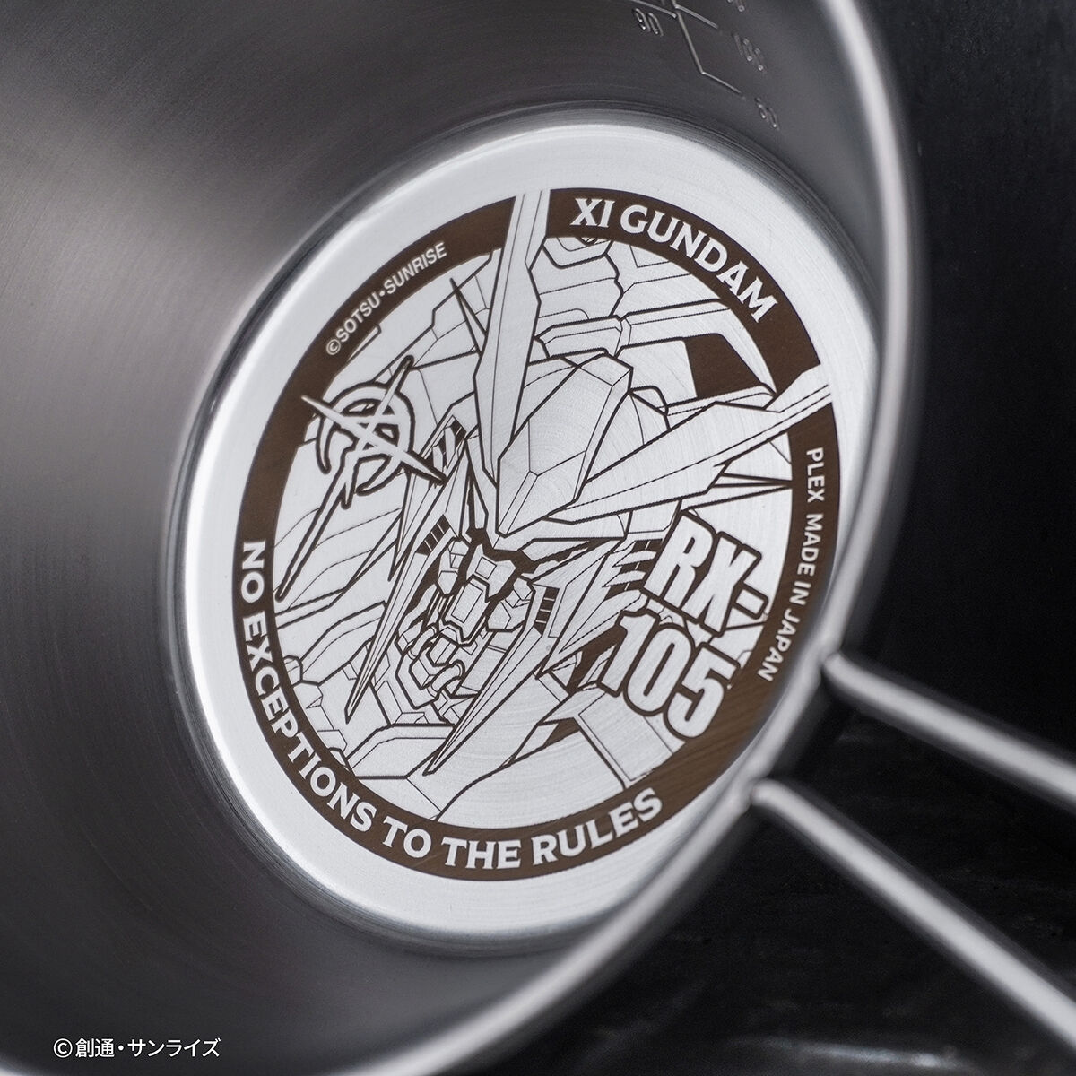 『機動戦士ガンダム 閃光のハサウェイ キルケーの魔女』に登場するモビルスーツ「Ξガンダム」をモチーフにしたデザインを刻印したシェラカップ。ドリンクや料理を注ぐ器として使える広口のステンレス製カップで、火にかけることができるので沸かす・焼く・煮るといった調理にも使用できる便利なアイテムです。
