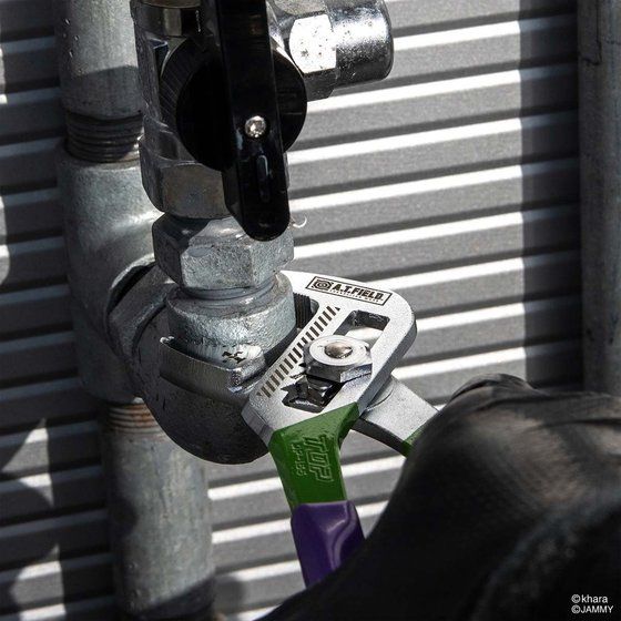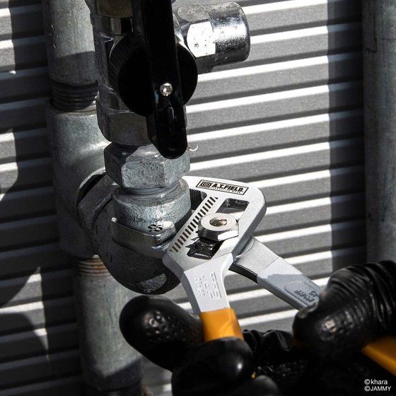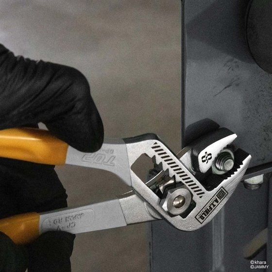 ・レンチプライヤ 165mm 1本【詳細】 ・サイズ:約43×173×18mm(閉じたとき) ・重量:約175g ・保証トルク:44.2N・m ・対象物寸法:32mmまで ・最小握り幅(閉じたとき):35mm ・くわえ部長さ:26mm ・先端部厚さ:8.8mm ・ハンドル厚さ:11.5mm ・材質:クロムバナジウム鋼 ・パッケージ形態/サイズ/重量:ブリスター台紙/約W79×H240×D20mm/約188g ・用途:口開きを調節して、幅広いサイズのボルト・ナット・パイプをつかめる工具。ガス・水道・エアー等の配管作業に最適。 ・生産国:日本 ・対象年齢:15才以上■警告・注意 ●本製品のビニールグリップは絶縁ではありません。電気の流れているものに使用できません。 ●口開きを調整するときは、ノコ刃状の調節穴に爪を確実に噛み合わせてください。 ●物をつかむときは、上アゴと下アゴの先端が平行に近い状態で対象物をつかんでください。 ●くわえ部(細かい溝の部分)で六角ボルト等を締め付けると、溝が潰れる場合があります。 ●本体の印刷や塗装は使用状況、使用年数によって剥がれる場合があります。あらかじめご了承ください。 ●工具の用途以外に使用しないでください。 【トップ工業株式会社】 |
