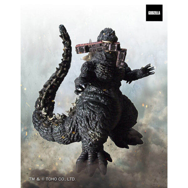 熱線放射シーンをイメージして紫の彩色のゴジラ本体に、差替え可能な新造形の下あごが割れた「熱線放射ヘッド」、そして新造形の「強噛みヘッド」が付属。